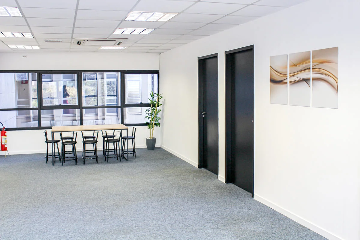 Sua mensalidade inclui mobiliário completo, internet de alta velocidade, água, café, limpeza, recepção, IPTU, condomínio e energia elétrica. Sem custos extras surpresa.
