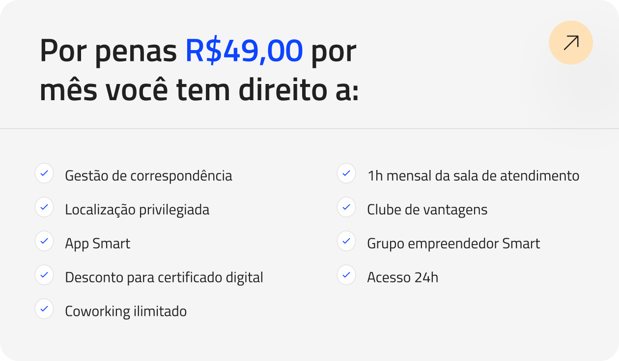 Obtenha seu endereço fiscal e comercial em, no máximo, 1 hora e ganhe acesso a todas as unidades do Coworking Smart no Brasil